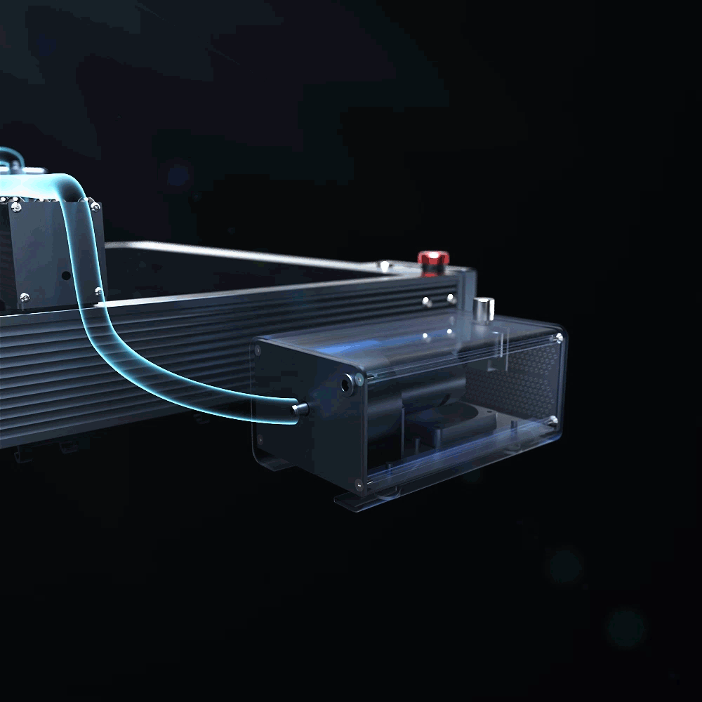 ● Equipped with 10-30L/min adjustable airflow, internal fume filtration can effectively remove the smoke and dust generated during the laser engraving process.